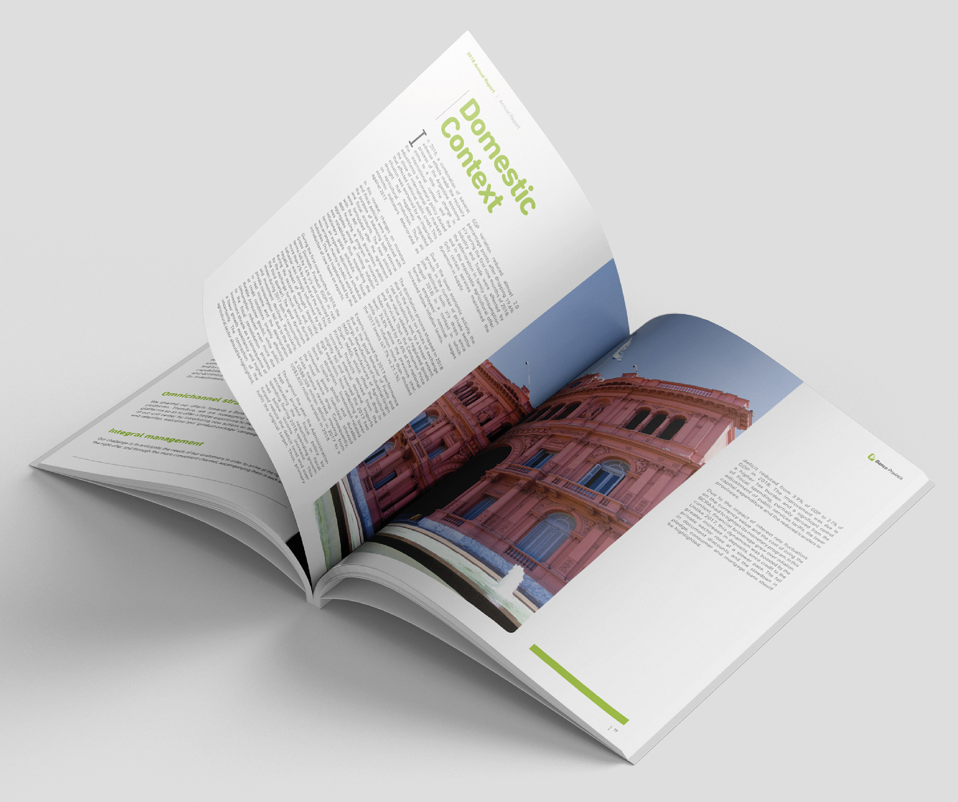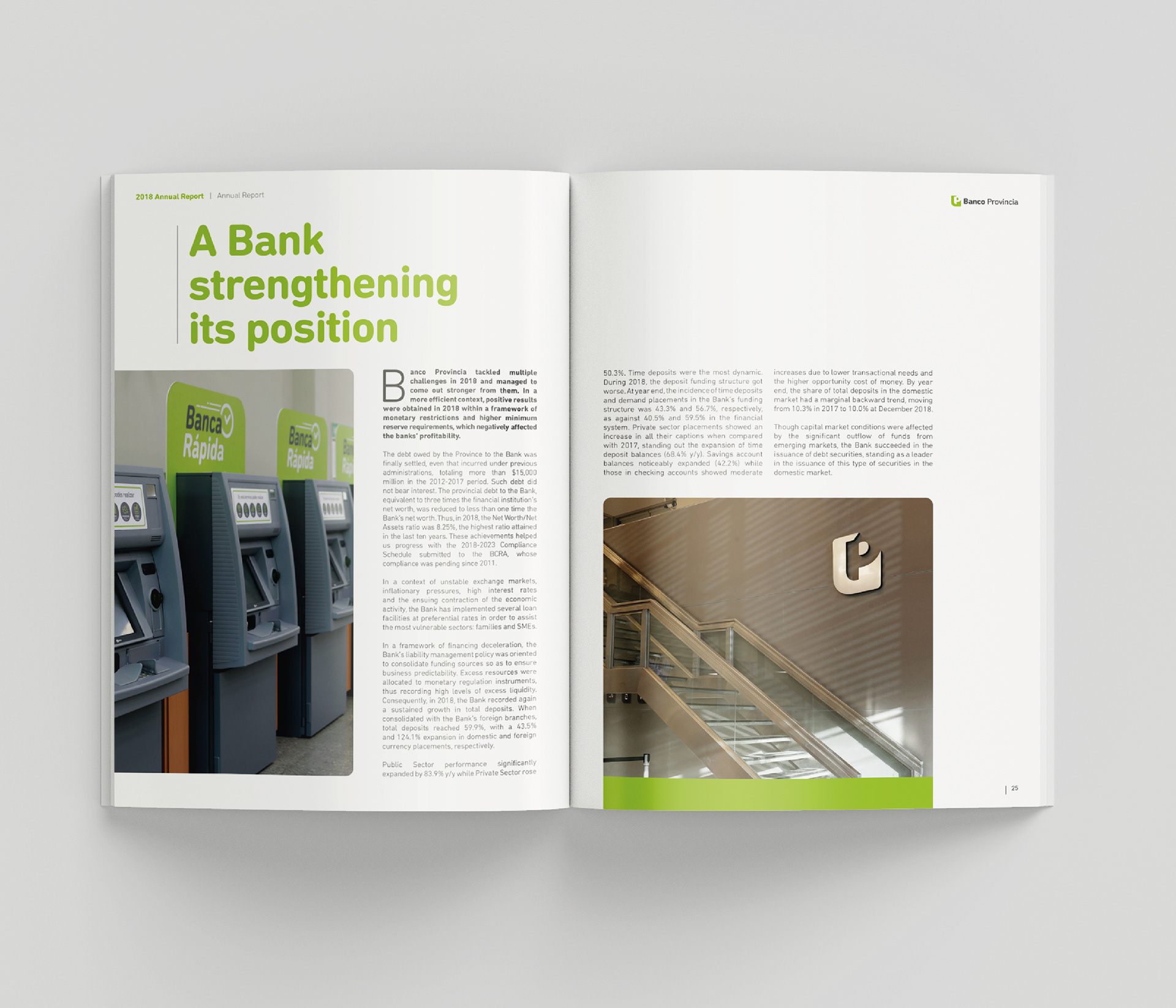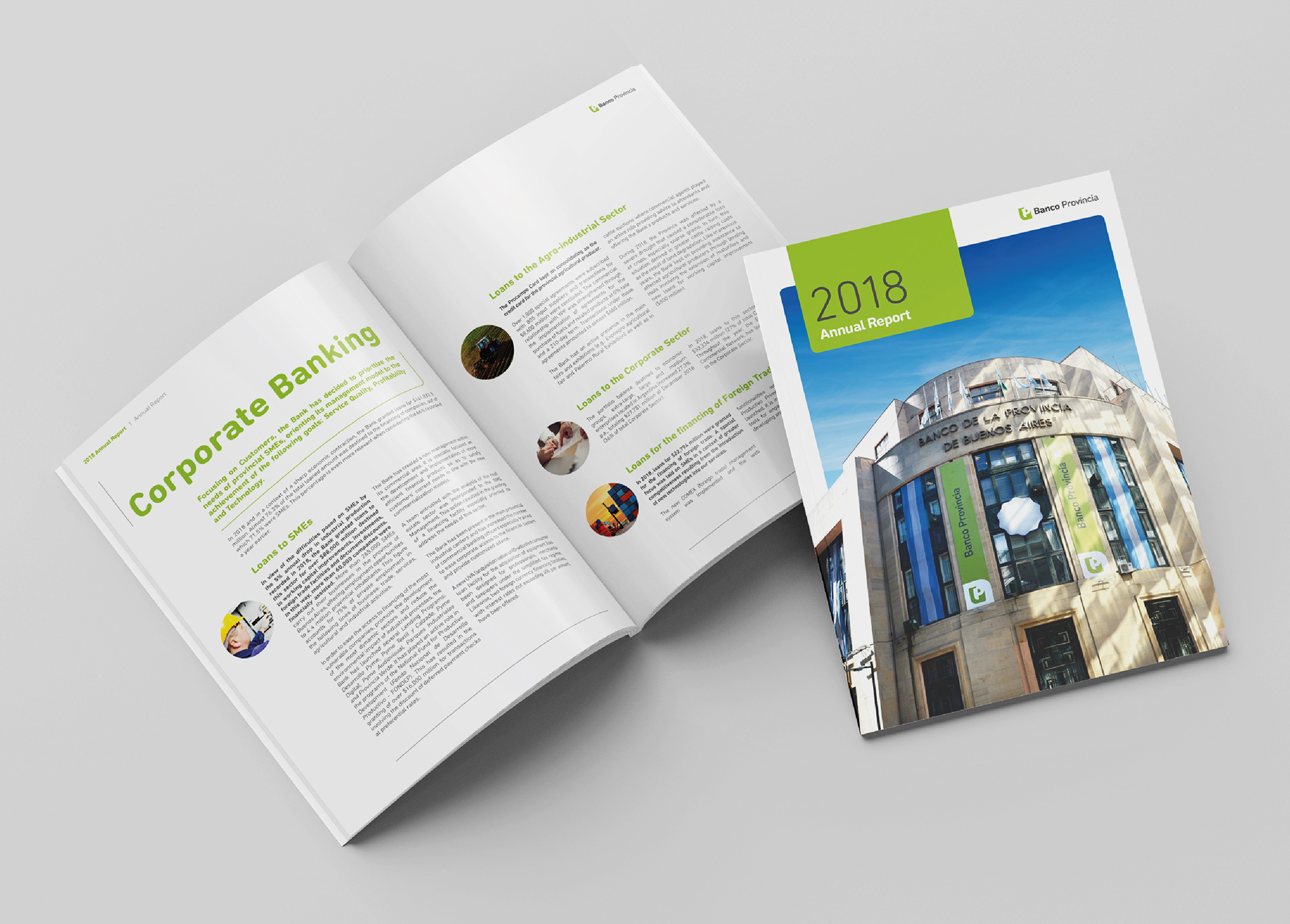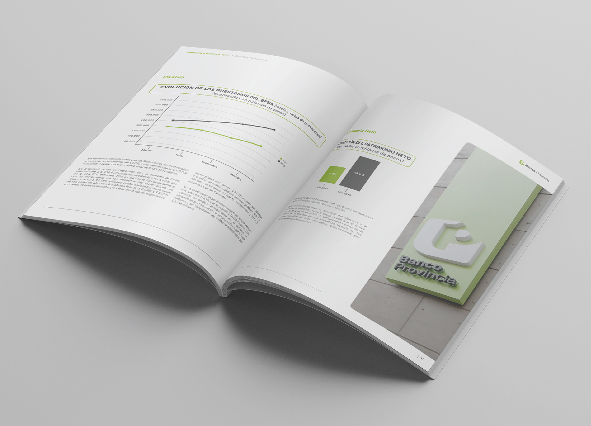 We designed Banco Provincia’s 2018 Annual Report for one of Argentina’s leading financial institutions. The challenge was to communicate complex financial information in a way that felt both formal and approachable, maintaining the brand’s institutional tone while bringing visual clarity and rhythm to the publication. Our approach combined elegant typography, balanced layouts, and a refined color palette to convey transparency and trust. Beyond aesthetics, the main objective was to build an editorial experience that guided the reader smoothly through large volumes of data. We developed visual hierarchies, infographic systems, and design patterns that kept the content dynamic and engaging from start to finish —turning a dense report into a cohesive and visually compelling narrative.