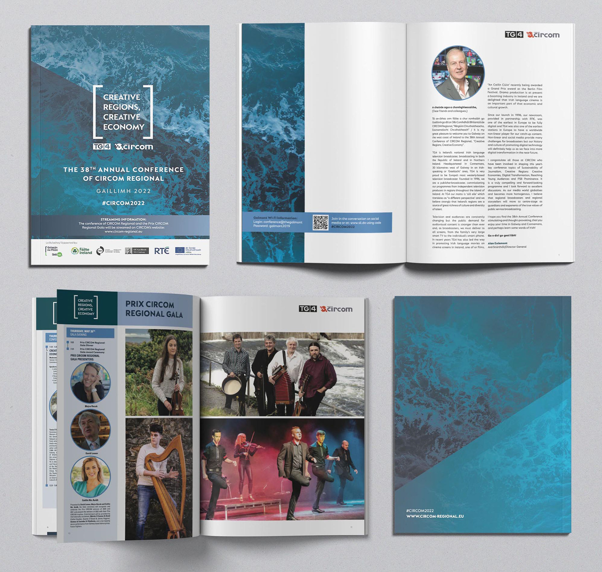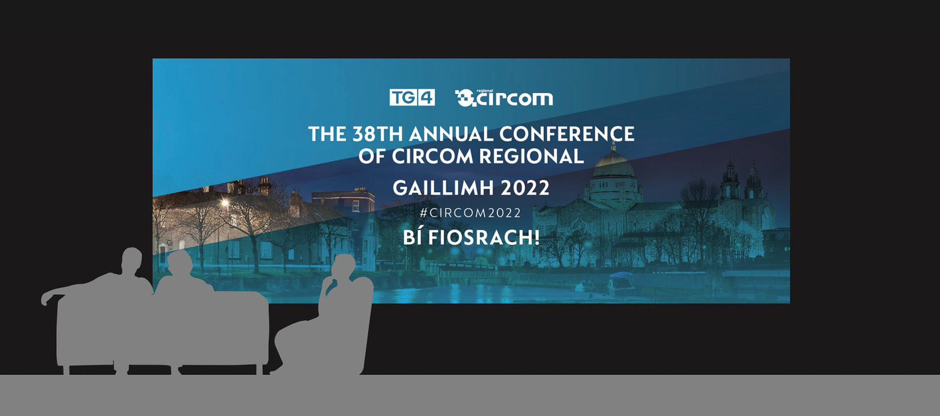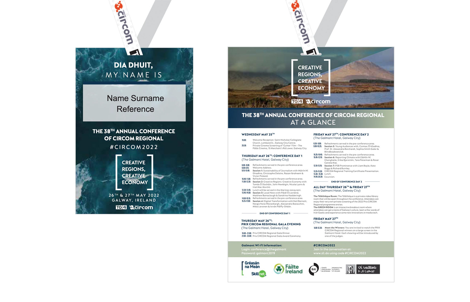 TG4 hosted the 38th Annual Conference of CIRCOM Regional in the Galmont hotel in Galway, Ireland, following strict Covid guidelines. Additionally, the Conference and the Prix Gala were streamed live for audiences worldwide. During the two days, presentations were given about the value of public service broadcasting and its role in promoting the diversity of culture and how it can encourage a better interregional cooperation media cooperation in Europe. We were in charge of designing all the visuals for the event, including static screen visuals, onstage and offstage motion graphics, various promotional materials and a booklet presenting the speakers' bios and conference agenda.