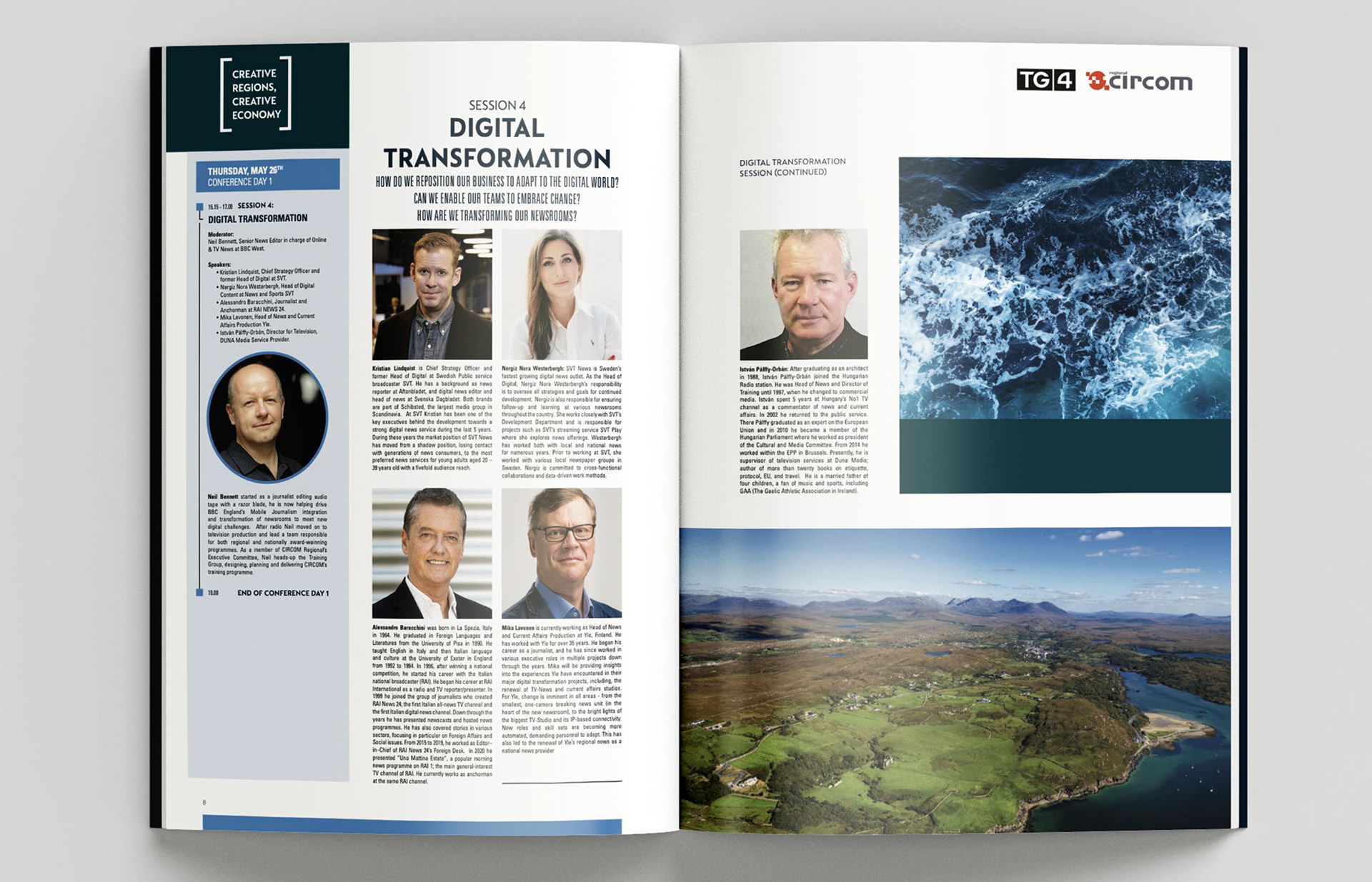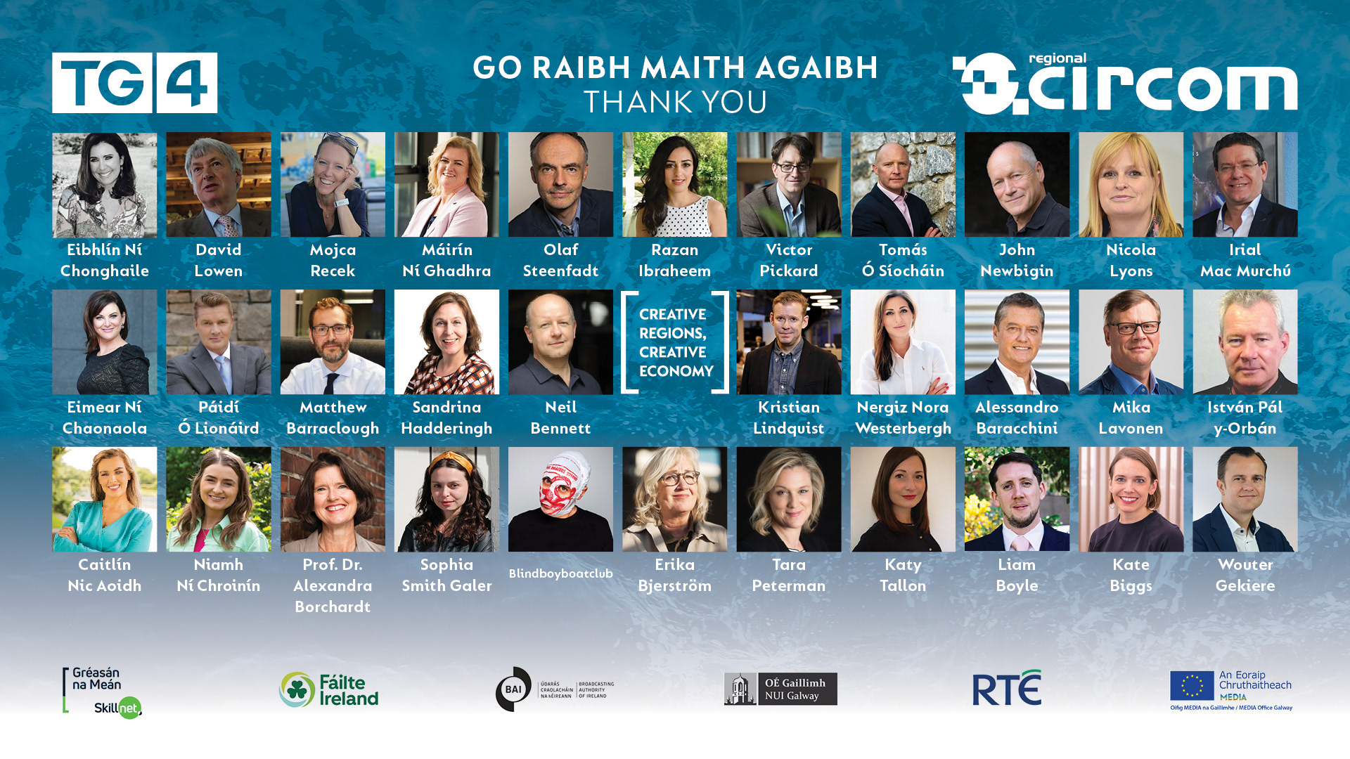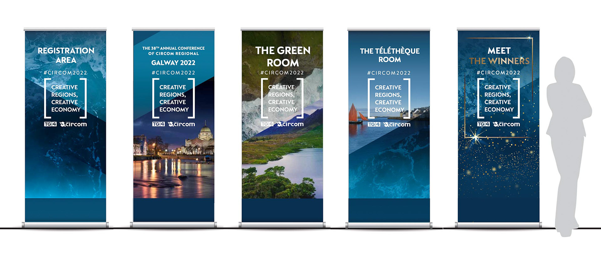 TG4 hosted the 38th Annual Conference of CIRCOM Regional in the Galmont hotel in Galway, Ireland, following strict Covid guidelines. Additionally, the Conference and the Prix Gala were streamed live for audiences worldwide. During the two days, presentations were given about the value of public service broadcasting and its role in promoting the diversity of culture and how it can encourage a better interregional cooperation media cooperation in Europe. We were in charge of designing all the visuals for the event, including static screen visuals, onstage and offstage motion graphics, various promotional materials and a booklet presenting the speakers' bios and conference agenda.
